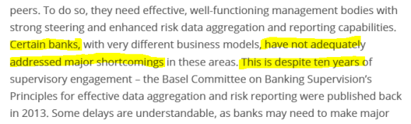 Parole che suonano come un monito. Della serie, multe in arrivo. E forse qualcosa di più. A differenza di quanto deciso da Bayer, certi dividendi esorbitanti devono essere piaciuti poco a Francoforte. Soprattutto da parte di soggetti operanti principalmente in Paesi dove si è potuto scegliere se pagare le tasse sugli extra-profitti o utilizzare quel denaro da tassi alle stelle per rinforzare le riserve. Ogni riferimento è puramente casuale, of course. E i buybacks miliardari per sostenere titolo, abbassare flottante e pagare bonus e dividendi ancora meno. E le ragioni sono serie. A partire da quella rappresentata nel grafico e argomentate domenica scorsa nel puntuto editoriale del quotidiano zurighese, Tages-Anzeiger, dal titolo eloquente: L’autorità di vigilanza dei mercati finanziari e la Banca centrale sono state congelate?.