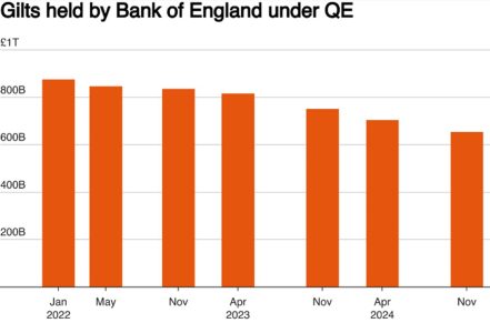 Ora diamo un’occhiata prospettica. Stando alle comunicazioni ufficiali presenti nel Budget, il Tesoro britannico emetterà circa 300 miliardi in Gilts quest’anno. E circa altrettanti nel 2026. Nel frattempo, la Bank of England avrebbe dovuto tagliare le sue detenzioni di circa 100 miliardi dal livello attuale. Ma se la Old Lady si fermerà con le vendite sul secondario, magicamente taglierebbe l’offerta di Gilts del 25%. Una manna per far calare quei rendimenti che non vogliono scendere. E che cominciano a gravare come una spada di Damocle su Fondi pensione e banche esposte sul real estate. Che dite, però, una mossa del genere non rischierà di risultare vagamente inflattiva? E, soprattutto, quell’entità metafisica chiamata mercato, alla fine non smetterà di autoconvincersi che tutto va bene e inizierà invece a prezzare conti pubblici di Sua Maestà così malmessi da obbligare il Governo a un’entrata in tackle scivolato sulla mitica indipendenza della Boe?