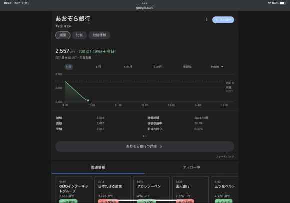 Ora date un’occhiata a quest’altro grafico, ci mostra il tracollo del titolo della banca giapponese Aozora avvenuto ieri.