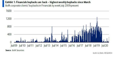 Certo, possono ulteriormente taroccare gli indicatori ufficiali. Ma sarebbe soltanto il passo terminale, l’ultimo miglio prima che il tappeto si tramuti totalmente in una duna di immondizia non più occultabile. Sarà per questo che scoppiano i casi GameStop, capaci di catalizzare l’attenzione dei media economico-finanziari per una settimana, invece che parlare di queste noiosissime discrasie macro? Sarà per questo che, come mostra questo ultimo grafico, le banche statunitensi nelle ultime tre settimane di gennaio hanno operato buybacks azionari per un ammontare che non si vedeva dal marzo 2020, il mese in cui il Covid “obbligò” la Fed a intervenire con il bazooka, onde evitare una crisi di liquidità stile 2008? Quante cose sono accadute il mese scorso, quasi tutte da record. Peccato non ne abbia parlato nessuno.