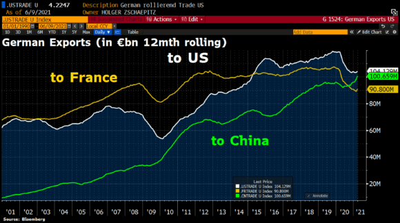 Ora Joe Biden, alla luce di un problema di gestione del deficit interno tale da imporre un regime di Qe perenne e di un conclamato ritardo del suo Paese in settori strategici della competizione internazionale, gioca la carta del maccartismo 2.0. Ma è fuori tempo massimo, quantomeno a livello di credibilità. E di freddi numeri. Lo sanno tutti, Germania in testa, come mostra questo grafico.