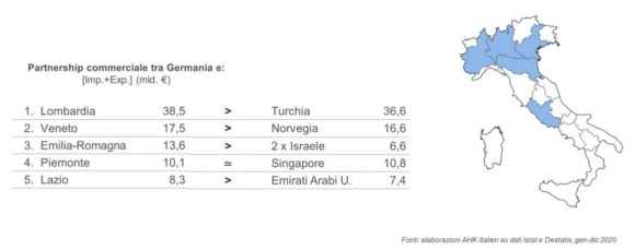 Se con la pandemia, il volume dell’interscambio commerciale tra Italia e Germania è sceso di 8,7 punti percentuali rispetto al 2019, attestandosi in base ai dati Istat su un totale di 116 miliardi di euro, Berlino rimane il primo partner commerciale per il nostro Paese, superando nettamente la Francia, al secondo posto con “soli” 75,9 miliardi. «Dopo quattro anni consecutivi di record nella nostra partnership economica e un 2019 nel segno della stabilità, la riduzione dei volumi di interscambio è significativa. Ma, al tempo stesso, inferiore a quella subita da altri importanti partner europei per la Germania, oltre che migliore delle previsioni fatte poco meno di un anno fa. In questo senso la sostanziale tenuta dell’interscambio tra i nostri Paesi è la riprova di un rapporto solido e radicato che ha retto la prova della pandemia e che svolgerà una funzione centrale anche nel contesto di ripresa», ha commentato Jörg Buck, consigliere delegato della AHK Italien.