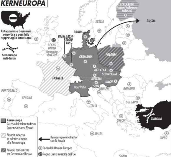 Ci ha messo poco a cambiare toni, ivi compreso il ripudio della lingua inglese che lo ha accompagnato per tutta la sua scintillante vita professionale. Si chiama Kerneuropa e non è un retaggio dei mondi un po’ mitomani da immaginario celtico-padano di Umberto Bossi, lo mostra la cartina: è un qualcosa di ancorato quotidianamente a concetti come produzione, fatturato, ordinativi, crescita.