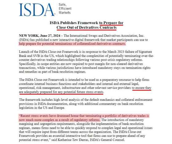 Ovvero, L’Isda, il regolatore per antonomasia per derivati e swaps, ha pubblicato la sua guida a una crisi sistemica del settore. Una specie di framework per affrontare una chiusura forzata di posizioni derivate allegre. Per trilioni di controvalore. Perché ora? Cosa sta accadendo dietro le quinte, tale da necessitare tonnellate e tonnellate di polvere nel ventilatore, al fine di rendere la visibilità della realtà una missione quasi impossibile?