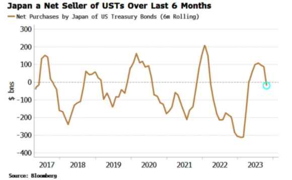 Solo lunedì, il Tesoro Usa ha reso note le revisioni delle necessità di finanziamento. Dopo emissioni record per 1 trilione nel terzo trimestre, quelle per i tre mesi in corso e per i primi tre del 2024 saranno entrambe da 1,5 trilioni. Con cosa si troverà a fare i conti, un già inguaiato Treasury Usa, se il maggior detentore estero di debito statunitense proseguisse il delevarge che negli ultimi sei mesi ha generato un net negative di acquisti? Tokyo può sorprendere più della Fed. E questo deve far paura. Tanta.