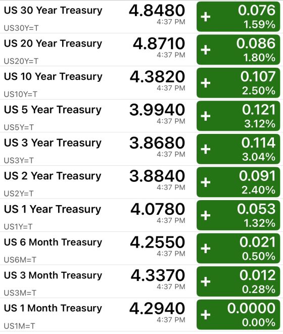 In compenso, tutti a sbandierare i tagli del Doge e l’argent de poche tutto ideologico dei sussidi ad Harvard. Sarà per questo, forse, che i rendimenti obbligazionari sembrano decretare come la ricreazione sia finita?