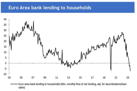 già oggi, il flusso netto di prestiti bancari alle famiglie nell’eurozona è più basso di quello toccato durante la crisi finanziaria del 2008. E quella pandemica da Covid. Un nuovo ritocco all’insù del costo del denaro, in cosa si sostanzierebbe? L’ultimo dato sugli ordinativi tedeschi parla chiaro: non si consuma. Uno sprofondo senza precedenti, peggiore del 2020. Ma se non metti denaro nel portafogli, ecco che appare difficoltoso riattivare i consumi azzoppati dai prezzi.