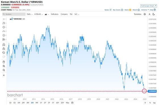 Seconda, la mostra questo grafico: lo won coreano è crollato ai minimi sul dollaro dalla Grande crisi finanziaria nel giorno di Natale. Questo nonostante la medesima Bank of Korea stia sostenendo valuta e mercati con manovre che vanno bene al di là dell’ordinario. Già ora. E ricordiamoci sempre che la Corea del Sud lo scorso marzo ha introdotto il divieto assoluto di vendite allo scoperto.