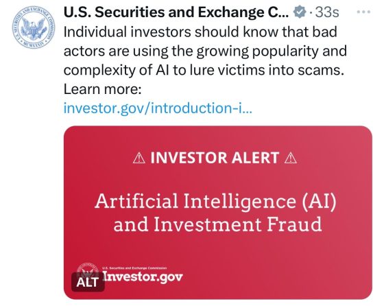 Forse Goldman Sachs non ha tutti i torti, quando comincia silenziosamente ad ammassare sacchi di sabbia per costruire trincee. Ma se volete davvero capire quale sia il contesto in cui ci muoviamo, date un’occhiata quest’ultima immagine. La quale ci mostra il post pubblicato lunedì dalla Sec, l’ente di regolamentazione e vigilanza dei mercati statunitensi, sul proprio sito ufficiale e su tutti i profili social.