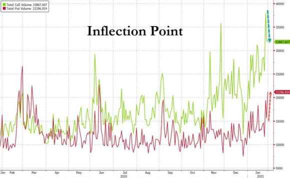 Quello che vedete rappresentato in gergo tecnico si chiama gamma phase reversal, di fatto l’inversione della dinamica che ha reso possibile le follie dei cinque giorni di trading che ci siamo lasciati alle spalle. Le opzioni call, rialziste, calano e quelle put, al ribasso, invece ora salgono. Tradotto: se non interviene qualcosa o qualcuno fra il weekend ancora in corso e la giornata di domani, la prossima settimana sul mercato sarà decisamente caotica. Forse più di quella appena conclusa. La quale, in effetti, ha fatto piangere qualche hedge funds e svelato gli altarini di Robinhood, costretto a prosciugare tutte le sue linee di credito bancario per tamponare le perdite sulla limitazione del trading e a chiedere (e ottenere, chissà su garanzia di chi) nuova liquidità per circa 1 miliardo.