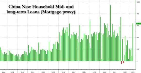Ma attenzione, perché in contemporanea con i dati del Bureau of Labor Statistics cinese sono stati pubblicati anche quelli della Pboc relativi a nuovi prestiti e Total Social Financing. E se tutte le voci hanno segnato un chiaro trend di espansione a sostegno dell’economia, ecco che a far riflettere sono i controvalori relativi a prestiti verso privati a medio e lungo termine. Di fatto, un proxy dei mutui immobiliari. Il grafico parla chiaro: siamo ai massimi dal gennaio 2022.