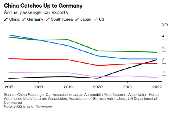 Insomma, se la logica della cineseria ormai non vale più per il comparto tech, dopo che il mondo ha scoperto come i marchi più trendy della moda occidentale spesso e volentieri fabbrichino i loro capi proprio in Cina, adesso anche il settore automotive rischia di partire senza più handicap golfistico. Utilizzare come arma (spuntata) anti-dumping la retorica della qualità da manifattura di sottoscala, non regge più. Anzi, rischia di rivelarsi controproducente. I dati parlano chiaro e questo secondo grafico lo mostra plasticamente: la Cina è ormai prossima a raggiungere la Germania come secondo esportatore globale di veicoli per passeggeri (il Giappone resta saldamente in testa), superando sia gli Usa che la Corea del Sud.