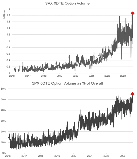 Una buying-frenzy simile si registrò l’ultima volta nel periodo immediatamente successivo all’esplosione della pandemia. Poco prima che la Fed tornasse in campo con il suo backstop totale al Sistema. A cosa dobbiamo prepararci, prima che torni il sereno da stamperia perenne? Diciamo che i detonatori non mancano. E quando la miccia sarà partita, tutti si ergeranno a pompiere e artificiere. Voi, però, fate ricorso alla memoria. E ricordate quando questa dinamica era spacciata come sintomo di un mercato sano. Euforico. Talmente fiducioso in se stesso da gettarsi anima e corpo nella scommessa su opzioni con scadenza a un giorno, come mostra appunto il grafico.
