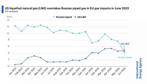 A giugno e per la prima volta in assoluto nella storia, l’Europa ha importato più gas liquefatto dagli Usa che gas naturale via pipeline dalla Russia. A confermarlo, gli ultimi dati appena pubblicati dall’IEA. Un trend che ha una genesi scontata: l’aumentare delle sanzioni e del conseguente utilizzo dei flussi di gas come arma diplomatica da parte della Russia ha spinto l’Ue verso fonti alternative. E gli Usa, stante anche il rafforzamento dei rapporti Nato, sono felicemente corsi in aiuto degli alleati. Ora, però, occorre porsi qualche domanda di prospettiva.