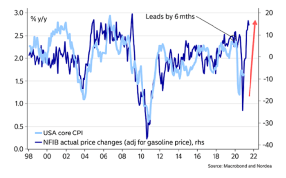 Se infatti le dinamiche attuali, stante i modelli di Nordea, porteranno il tasso di inflazione core negli Usa al 2,5% già a giugno, ovvero quando saranno stati dispiegati nel sistema 1,1 triliardi di dollari di liquidità e altri 300 si prepareranno a essere riversati, il secondo mostra come il tasso di apprezzamento del valore delle materie prime da inizio anno, attorno al 25% (il più alto da 30 anni a questa parte), sia consistente con un tasso di inflazione core appena sotto il 4%. Quindi, quasi il doppio in realtà del tasso-obiettivo della Fed su base annua. In un contesto simile e con un mercato azionario già in bolla sui multipli e ai massimi storici record di valutazione, a cosa equivale quel diluvio di liquidità ulteriore in arrivo, fra “tesoretto” del Treasury, Qe della Fed e programma di stimolo federale? Benzina sul fuoco. A pioggia. E con qualcuno che nel frattempo ravviva le fiamme, lanciando cerini accesi per ingannare l’attesa. Sarà per questo che Olivier Blanchard ha sentito intellettualmente il bisogno di dire basta, piuttosto che accodarsi alla letterina a Babbo Natale dei 100 economisti in cerca d’autore che Avvenire ha ospitato con tanto malcelato orgoglio?