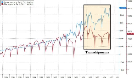 Il famoso accordo commerciale con il Vietnam che Donald Trump ha sbandierato l’altro giorno e che la Cina ha finto di accogliere con disappunto, di fatto altro non è altro che un by-pass proprio del commercio bilaterale fra i due giganti, utilizzando Hanoi come dogana. Di fatto, esattamente come nel regime di falsi dazi della prima Amministrazione Trump, Cina e Usa si spartiranno il mondo. All’epoca a colpi di esenzioni merceologiche mascherate da waivers temporanee, oggi attraverso il porto franco vietnamita. Non a caso, vi invito a notare come le grandi catene retail di quel Paese stiano ottenendo prestiti a condizioni pressoché di regalo dalle grandi banche e dal private equity occidentali.