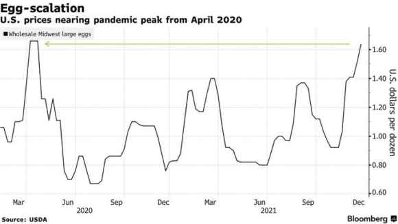 E quest’ultimo grafico mostra come sottovalutare il trend appena descritto potrebbe tramutarsi in un errore di valutazione esiziale. Presentando i conti del secondo trimestre dell’anno fiscale 2021, Dolph Baker, presidente e Ceo di Cal-Maine Foods, il maggior produttore di uova fresche degli Usa, è stato chiaro: «Siamo rimasti a galla, nonostante l’impatto dei maggiori costi per gli ingredienti dei mangimi, la lavorazione, l’imballaggio, il trasporto e la manodopera». Ma la realtà davanti al mercato è chiara: i costi di produzione agricola per dozzina di uova sono aumentati del 21,6% su base annua, un incremento principalmente legato ai maggiori costi di alimentazione, già cresciuti a loro volta del 29%.