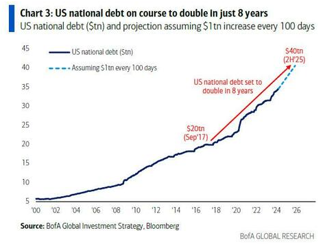 Ora guardate questo secondo grafico, il quale ci mostra l’ultima simulazione pubblicata dal centro studi di Bank of America. Non la Banca centrale russa o cinese.