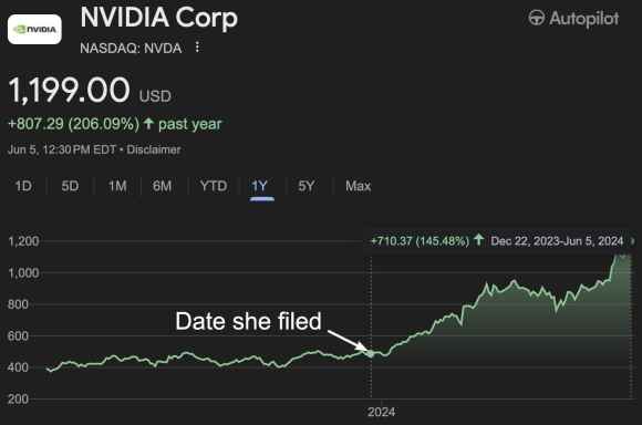 Ad esempio, date un’occhiata a questa immagine: ci mostra l’andamento delle opzioni call di Nvidia dal momento in cui Nancy Pelosi ha acquistato oltre 5 milioni di dollari di controvalore di quello strumento. Era il 22 dicembre dello scorso anno. Da allora, il titolo ha segnato +145%.