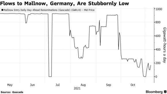 Pessima dinamica in un Paese che sta silenziosamente lottando con l’esplosione controllata della bolla immobiliare. Davvero pessima. Ma, paradossalmente, c’è di peggio. E guarda caso riguarda l’Europa, entità mitologica composta da 27 Stati che pensano ognuno per sé e, solitamente, si trovano d’accordo solo per deliberare scelte mediamente autolesioniste. Ad esempio, il muro contro muro verso la Russia. Ieri era l’8 novembre, data in cui Gazprom avrebbe dovuto seguire gli ordini impartiti dal Cremlino e cominciare il riempimento delle riserve di gas naturali del Vecchio Continente, ridotte al minimo storico proprio mentre il freddo comincia a farsi sentire. Lo ha fatto? Ci vorrà qualche giorno per capire, ma questo grafico mostra come nella settimana conclusasi domenica scorsa (7 novembre), Mosca abbia continuato a tenere a stecchetto i depositi dell’hub tedesco di Mallnow.