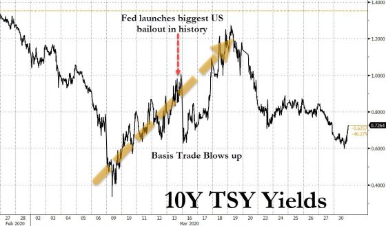 I futures ma soprattutto i primi scambi sui mercati asiatici di domenica notte ci daranno forse qualche indicazione. Sicuramente il cambio dollaro/yen sarà il principale canarino nella miniera. Ma il problema resta. Da una situazione simile si esce solo con un Qe come quello lanciato dalla Fed nel marzo del 2020. Ovvero, alluvionale. E casualmente, il déjà vu inquieta ma chiarifica. Anche allora si intervenne con volontario e strumentale ritardo sull’esplosione del basis trade che avvenne fra il 9 e il 13 marzo. Si attese. E quando ormai lo spillover aveva raggiunto ogni angolo del globo e ogni singolo media esistente, il casus belli giunse in dote come un regalo di cui tutti erano già a conoscenza. Ma che necessitava, comunque, dell’educazione ipocrita della falsa sorpresa da mostrare in favore di telecamera.