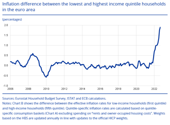 Certo, il mondo del lavoro e sindacale tedesco ha ben poco in comune con quello italiano. Ma una cosa è uguale per tutti in Europa, ovvero questa: il delta di maggior impatto dell’aumento dei prezzi fra cittadini più e meno abbienti. Un bel 2% netto.