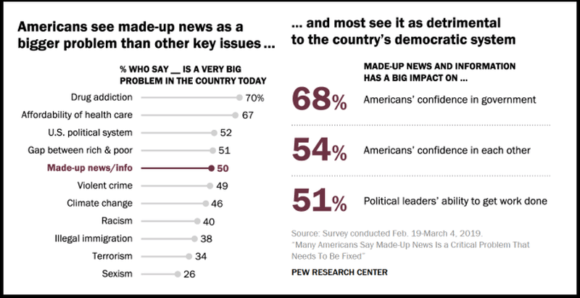 Guardate questi grafici, i quali parlano chiaro. Tre anni di amministrazione Trump hanno portato in dote solo due risultati: mercati da record, quindi un enorme favore a Wall Street che un qualunque Presidente “normale” non si sarebbe potuto permettere di fare dopo il 2008, e trionfo delle fake news come nuova categoria politica e arma di propaganda. Anzi, come ci mostra il primo grafico, la creazione del nuovo mostro quotidiano da combattere, dopo che l’Isis ha definitivamente perso di appeal e credibilità. Oggi, stando all’ultima rilevazione Gallup, lo statunitense medio ha più paura delle cosiddette fake news dei mezzi di comunicazione che del terrorismo. Il nuovo nemico, oltretutto meno costoso, imbarazzante e letale, è servito. La nuova paura quotidiana con cui convivere e da cui trovare qualcuno che ci difenda, è pronta all’uso. E all’abuso.