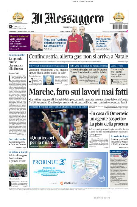Capite da soli la ragione di quei tre mesi di sospensione del taglio al 65% dei fondi di coesione: perché l’ipocrisia regna sovrana. A Bruxelles come a Roma, dove nessuno trova poco consono un viaggio negli Usa del Premier nel pieno del caos. Non si può mancare di rispetto all’alleato atlantico per antonomasia, stante la guerra in corso in Ucraina? Benissimo. Ma servono quattro giorni, non si poteva accorciare? Serve l’intera, ultima settimana di campagna elettorale e le ore in cui sarebbe fondamentale ricordare ai marchigiani che lo Stato non li lascia soli, magari anche stanziando soldi e non solo facendo visite? Ma soprattutto, signori, guardate queste due prime pagine di domenica, le quali fanno riferimento a due testate – Il Sole 24 Ore e Il Messaggero – certamente non ostili al Governo Draghi, né tantomeno tacciabili di simpatie filo-russe.