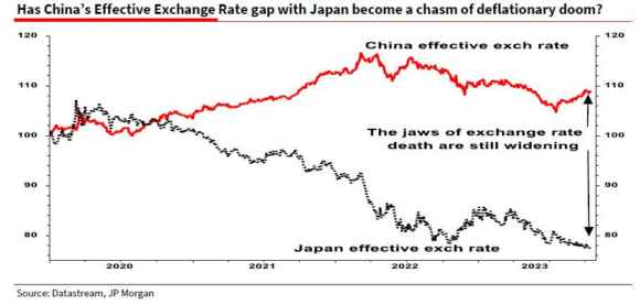 Negli ultimi anni, il gap fra le due valute è divenuto un chiasmo. Perché nonostante il Giappone stia a sua volta espandendo la sua politica monetaria a livelli folli, quella del Dragone appare decisamente deflazionaria. Forse, il deflatore a precipizio rappresenta un proxy credibile e da prendere in decisa considerazione? D’altronde, i recenti interventi della Pboc – tra tagli dei requisiti e dei tassi – hanno messo sotto pesante pressione lo yuan, solo recentemente rimbalzato nel basket.