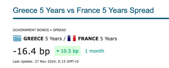 Nel frattempo, l’Oat decennale francese sembra credere alla ricostruzione del quotidiano parigino. In una sorta di contrappasso del 2011, da ieri il titolo di Stato a 5 anni greco è passato in positivo a livello di differenziale sull’Oat pari durata.