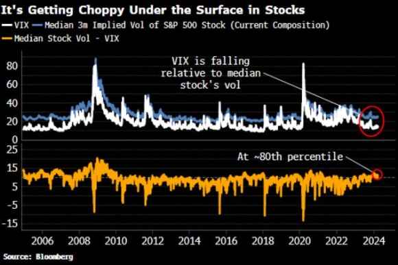 Ora date un’occhiata a questa immagine: la rincorsa pare già iniziata. La volatilità implicita è in crescente decouple dal Vix rispetto ai titoli azionari che compongono lo Standard&Poor’s 500. Qualcosa, sotto il pelo dell’acqua, sta muovendosi. Posizionandosi.