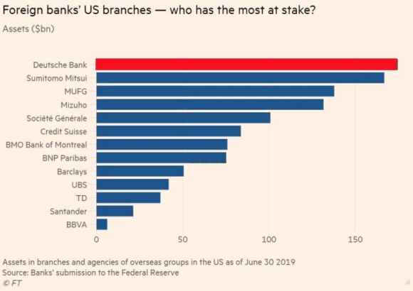 Questa tabella parla decisamente chiaro al riguardo e getta una luce decisamente poco tranquillizzante sull’accelerazione della Fed nel suo cambio di policy monetaria e sull’asta repo del mattino, con la sua richiesta di liquidità per il fine settimana eccezionalmente e inaspettatamente alta. Ovvero, la Federal Reserve, onde evitare anche solo la percezione di una nuova Lehman Brothers che possa emergere dall’operatività di Deutsche Bank negli Usa attraverso il suo spregiudicato desk di investimento, sta di fatto salvando il gigante tedesco dai piedi d’argilla Poco importa, ormai.