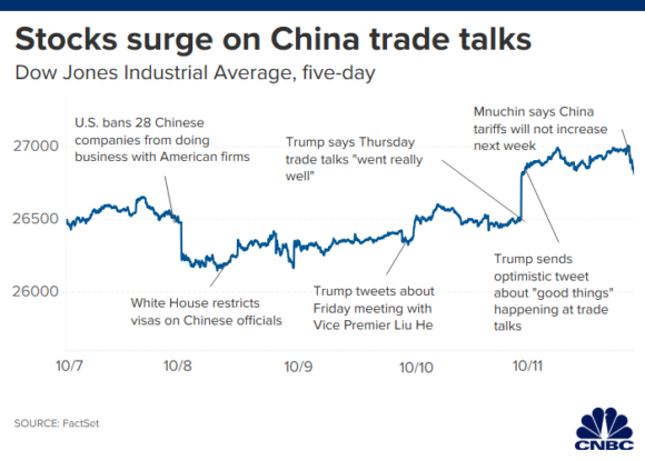 E sapete perché? Perché visti gli ultimi sviluppi, debitamente passati sotto silenzio dai media, la questione non pare più confinata a singoli soggetti too big to fail, siano essi rintracciabili in Deutsche Bank o in qualche colosso creditizio giapponese troppo esposto su Softbank e sullo schema Ponzi di WeWork: era la giostra nel suo insieme che stava per fermarsi del tutto, era il sistema che stava crollando come un castello di carte. Un’altra volta. Sarà per questo, forse, che i media hanno debitamente silenziato l’accaduto e, soprattutto, la sua assolutamente irrituale emergenzialità di timing? In compenso, grande spazio al martirio dei curdi. E all’embrione di accordo commerciale fra Usa e Cina, comunicato da Donald Trump in persona poco dopo la pubblicazione del comunicato della Fed. A detta dello stesso presidente, “una fase 1, un passo parziale”.