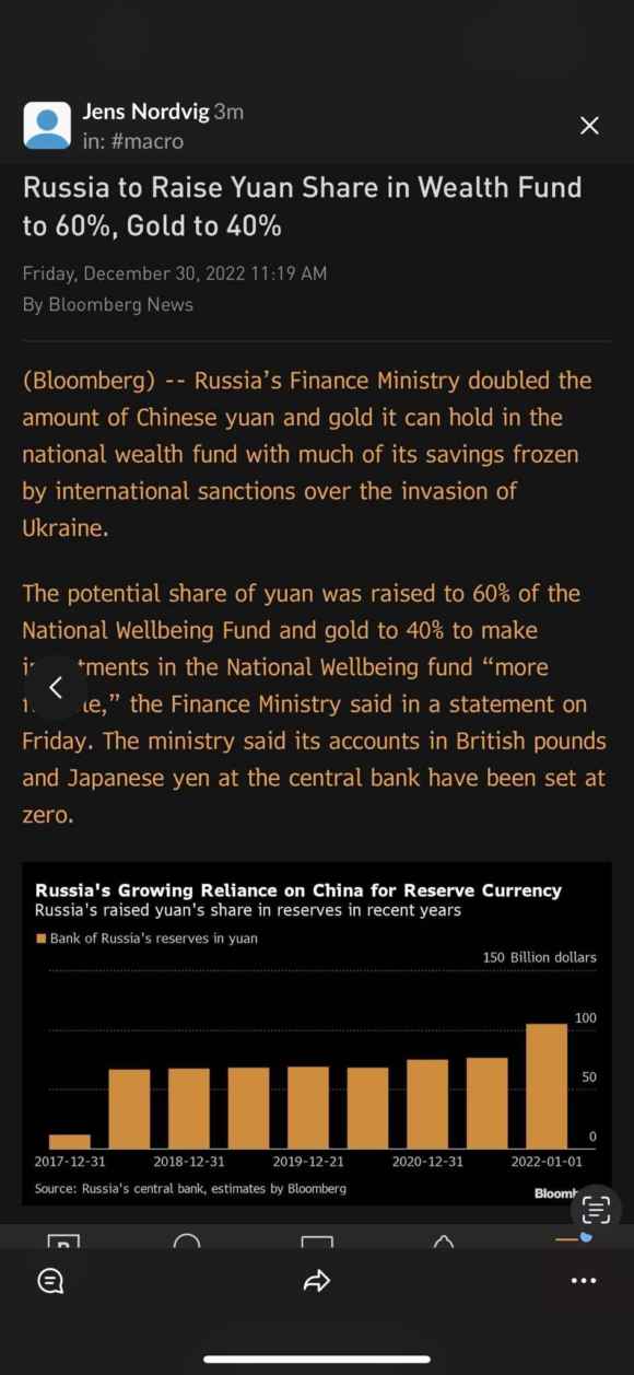 Mosca non ha solo accentuato a livello assoluto la sua dipendenza di export energetico da Pechino, ha di fatto ribilanciato gli equilibri di portfolio e riserve del Fondo sovrano sulle esigenze cinesi. Più yuan, più oro. Tradotto, de-dollarizzazione che accelera. E, soprattutto, implicito prodromo della nascita del petro-yuan. Come si muoveranno ora i rimanenti Brics, India e Iran in testa? E l’Opec, Arabia Saudita in testa? Quanto crescerà l’interscambio bilaterale di commodities in valuta cinese o comunque svincolato dal biglietto verde e dal suo ruolo benchmark? E quanto accetterà l’America che il dollaro divenga riferimento unicamente per la finanza e non più per gli hard assets, quelli che sfuggono dalle logiche distorsive del monetarismo?