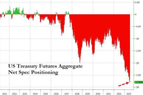 Insomma, se Berna voleva stuzzicare la curiosità e far partire una sfida tra hackers, c’è implicitamente riuscita. Perché la forza del mercato sta proprio nella sua natura di oscurità per i non addetti ai lavori. Utilizzando spesso e volentieri paroloni inglesi e formule astruse per allontanare le pruderie di trasparenza dell’opinione pubblica. Un po’ come si fa con le zanzare, spruzzando lo spray. Ad esempio, questo grafico ci mostra come l’aumento delle posizioni a leva su scommesse per un crollo dei futures dei Treasuries Usa rimandi echi sinistri di quel basis trading che nel marzo del 2020 generò perdite enormi ai pair-trading funds e obbligò la Fed all’ennesima iniezione di miliardi.