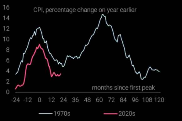 In compenso, quel CPE statunitense un po’ infiammato fa pensare, se messo in relazione con questo. Ovvero, stando alla comparazione storica fra pattern dei prezzi negli anni Settanta e attuale, all’orizzonte ci sarebbe un’ondata inflattiva ancora più netta e drastica di quella che – apparentemente – ci stiamo mettendo alle spalle.