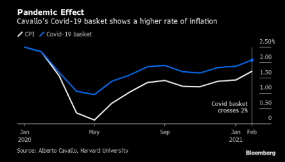 Chicken game, il gioco del pollo: chi si getta dall’auto in corsa per primo? Pericoloso. Molto pericoloso in un mondo inondato di liquidità ma anche terribilmente esposto a indebitamento e leverage. Una miscela esplosiva: praticamente, il corrispettivo di accendersi una sigaretta con una bottiglia molotov. E perché il mondo sarebbe disposto a correre questo rischio? Lo spiega questo altro grafico: la (falsa) convinzione che la fiammata inflattiva in atto sia totalmente ascrivibile al cambio di paradigma imposto agli stili di vita dalla pandemia, la cosiddetta Covidflation su cui sta lavorando il professor Alberto Cavallo della Harvard Business School. Quindi, affidandosi ciecamente ai vaccini, la convinzione è quella di un ritorno al vecchio, caro regime di deflazione che garantisce le condizioni per un Qe pressoché perenne. E le Borse festeggiano.