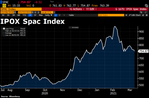 Insomma, Tokyo difficilmente accetterà la sfida di Pechino. E attenzione, perché la Cina sta muovendosi in questa direzione con Hong Kong già in regime di correzione ufficiale. E gli Stati Uniti? Ci pensano questi due grafici a mettere la situazione in prospettiva, poiché ci mostrano cosa stia accedendo in queste ore, nel silenzio generale della stampa. E grazie al caos vaccini. Il comparto delle Spac, i veicoli di collocamento che hanno garantito l’ultima fase di rally, è ufficialmente entrato in bear market, avendo perso oltre il 20% dai massimi.