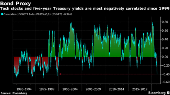 Titoli sui giornali? Zero. Eppure la SPAC-mania aveva monopolizzato media e social network per mesi: puff, sgonfiata come un soufflé mal riuscito. Senza che nessuno se ne preoccupi. Ancora più seria la dinamica messa in prospettiva dall’altro grafico, poiché mostra la sempre più stringente correlazione fra rendimenti dei Treasuries e andamento del Nasdaq, il quale sta continuando a patire cali. Quando non veri e propri tonfi. Eppure, guarda le coincidenze: grazie all’ultima follia (concordata) di Recep Erdogan e il conseguente crollo della lira turca, i rendimenti dei titoli di Stato Usa sono rientrati in margini accettabili rispetto al tipping point rappresentato da quota 1,75%.