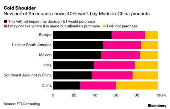 Come sarà il mondo post-Covid? Davvero la pandemia rappresenterà la pietra tombale definitiva sugli assetti venutisi a creare negli anni Novanta con l’avvento della globalizzazione e della finanziarizzazione del sistema? Una cosa è certa: il caos. Dal quale, si sa, si può generare di tutto, dipende quale demiurgo prenda il potere e decida come plasmare la kora. Guardate questi due grafici, ad esempio. Il primo mostra come in base a un sondaggio condotto fra il 12 e il 14 maggio scorsi dall’azienda di consulenza per il business, FTI Consulting, il 40% degli americani interpellati si dica pronto a non comprare più nulla che sia prodotto in Cina. La campagna del duo Trump-Pompeo contro Pechino riguardo le responsabilità dirette nella pandemia – dalla teoria sulla nascita nel bio-lab di Wuhan alle accuse di ritardo nella comunicazione della gravità di quanto stava accadendo – sta funzionando alla grande: l’opinione pubblica è orientata, il capro espiatorio su cui basare la campagna elettorale, evitando quindi di dover parlare di economia e 38,6 milioni di nuovi disoccupati in 9 settimane, è servito. Nulla di nuovo, l’America in questo è docente assoluta. E a livello bipartisan, visto che la famiglia Clinton potrebbe tenere dei tutorial al riguardo.