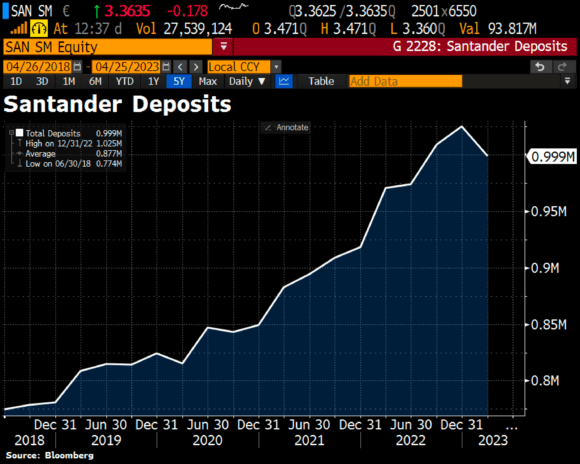 E che la situazione sia poco simpatica, lo dimostra la rapidità da primatista olimpico con cui il Ceo dell’istituto, José Garcia Cantera, sia corso a rassicurare il mercato rispetto alla tenuta dei depositi del ramo statunitense di Santander, tanto da azzardare una promessa a doppio taglio: Non prevedo un alto incremento nella remunerazione dei depositi negli Usa. Contagio? Giova sottolineare che poche ore prima, nella serata del 24 aprile e quando Wall Street aveva appena chiuso le contrattazioni, proprio negli Stati Uniti la sopravvissuta First Republic Bank avesse ammesso un crollo dei depositi del 41% nel primo trimestre di quest’anno, passati da 172 miliardi di fine 2022 a 104,5 miliardi al 31 marzo. A cui si è già aggiunto un altro -1,7% al 21 aprile scorso. Inoltre, Frb ha ammesso di aver preso in prestito per restare a galla qualcosa come 104 miliardi di dollari da Federal Reserve, Federal Home Loan Bank e JP Morgan. Non a caso, nelle contrattazioni after-hours il titolo è precipitato a -23%.
