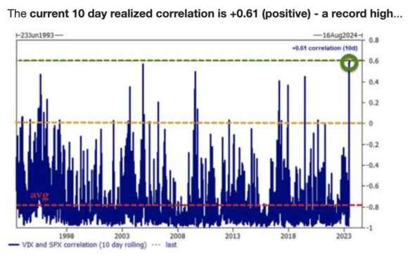 Domande lecite, stando alle notizie che arrivano da Rostov. E alla luce del grafico: perché 10 giorni di correlazione positiva fra Spx e Vix rappresentano un massimo record. Tradotto? Quanto sta accadendo a livello di dinamiche di mercato non ha precedenti. L’indice della volatilità in perfetto re-couple con i rialzi di mercato e anche con i sui ribassi suona l’allarme. Something’s gotta give, qualcosa deve essere ceduto. E qualcuno deve cederlo.