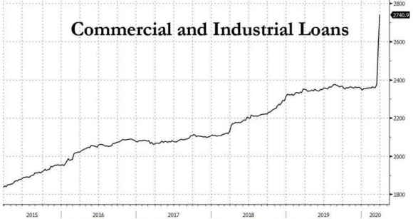 Forse, piuttosto che perdere tempo con gli eurobond, sarebbe il caso di agire per evitare di ritrovarci – quasi senza accorgercene – sotto le bandiere rosse di Pechino, costretti a cedere rami di aziende strategiche o comunque commercialmente profittevoli per l’incapacità di difenderci in maniera efficace. Certo, stante questa dinamica, il timing della decisione presa dalle banche Usa nei confronti del comparto corporate Ue, da sempre loro cliente privilegiato, appare quantomai sospetto. Anche perché, come mostra questo grafico, subito prima che il Tesoro statunitense lanciasse il suo programma di prestiti garantiti alle piccole e medie aziende, il livello di concessione di credito verso attività commerciali da parte dei giganti bancari americani aveva raggiunto picchi record. Di colpo, rubinetti chiusi.