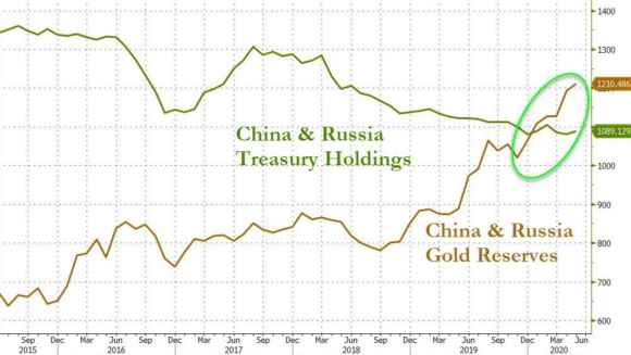 E questo grafico sembra implicitamente suggerire quale sia la tacita e sottintesa finalità della mossa imposta a freddo dagli Usa al G7: offrire una percezione di sostegno alla de-dolarizzazione progressiva in atto nel nuovo ordine mondiale capitanato da Cina, Russia e India. Ovvero, si scarica debito pubblico Usa e si compra oro. Magari, adesso, aumentando persino gli acquisti, sia perché Mosca potrebbe operare uno sconto come sul petrolio degli Urali ai Paesi amici – quasi un fixing parallelo e di emergenza -, sia per sostanziare sempre di più le riserve collettive a garanzia globale del progetto di valuta benchmark concorrente di dollaro ed euro, proposito appena confermato al Forum dei Brics di Pechino.