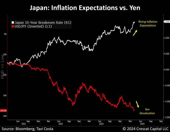 Lo yen che sfonda quota 155,7 sul dollaro senza che la Bank of Japan apra bocca, se non per spostare a 160 la linea Maginot che renderà ineludibile un suo intervento, ci mostra quale sia il frutto marcio che un decennio di Qe permanente sta per far cadere dal ramo. Se la Bank of Japan dovesse tardare nell’intervento, chiaramente il Nikkei ne beneficerebbe, com’è sempre stato visto la strabordante componente export di quell’indice. Ma chi deve fare i conti con investimenti e indebitamento in dollari, a quale rischio andrà incontro, se la valuta nipponica continua a deprezzarsi? Chiedere a Softbank per referenze.