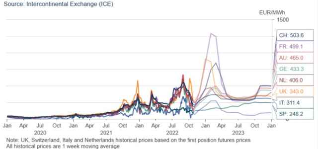 Stiamo ragionando su un crollo della crescita peggiore di quello registrato durante la crisi Lehman del 2008-2009. Ora, cosa deve farci paura? Questo, ovvero le proiezioni su dati ICE dei prezzi del gas al MWh per i vari Paesi europei il prossimo inverno.