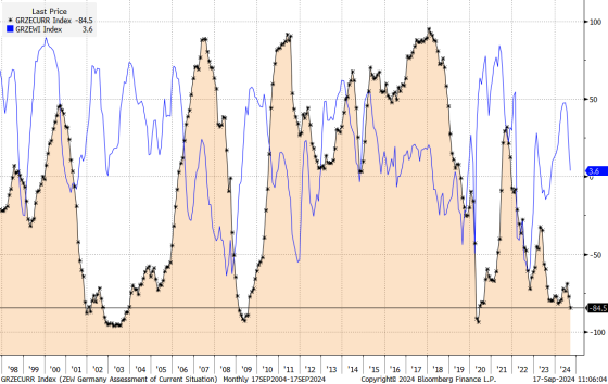 Ma di cosa la stampa si è ben guardata dal parlare? Di questo. L’indice Zew di settembre relativo allo stato attuale e alle previsioni per l’economia tedesca. E le sue due voci principali. Ovvero, condizioni attuali a -84.5 contro attese di -80 e un dato precedente di -77.3. Ma, soprattutto, aspettative al 3.6. Contro attese di 17 e lettura precedente al 19.2.
