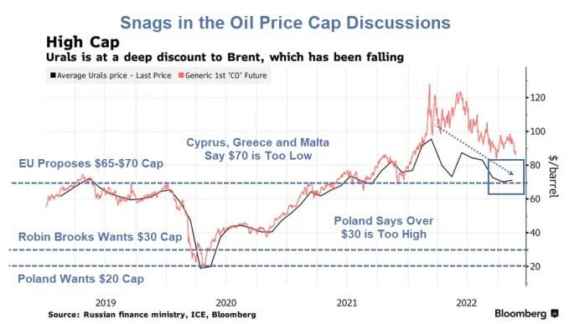 E attenzione, perché questo grafico ci mostra come i ministri dell’Energia Ue abbiano voluto raddoppiare gli sforzi e tramutare in fallimento annunciato anche il price cap sul petrolio russo, il quale dovrebbe entrare in vigore già dal prossimo 5 dicembre sotto iniziale forma di bando. Peccato che dopo il nulla di fatto, la discussione sia stata aggiornata a un nuovo meeting straordinario da tenersi probabilmente il 13 dicembre. Nel frattempo, liberi tutti.