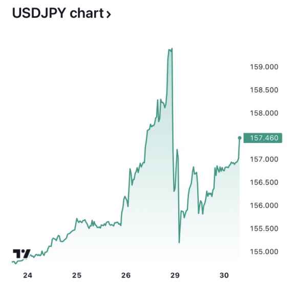 Forse è il caso di aprire gli occhi. Questo articolo nasce paradossalmente alla cieca. Perché scritto prima delle comunicazioni della Fed. Comunque sia, alcune cose possono essere dette. A freddo. E restare valide. Ad esempio, quanto ci mostra questo grafico: stando ai dati di bilancio resi noti martedì, la Bank of Japan ha messo in campo il controvalore di 34 miliardi di dollari per frenare il tonfo dello yen sulla divisa statunitense il giorno precedente. Per capirci, lo storico intervento coordinato del settembre 2022 ne mise in campo in totale un’ottantina.