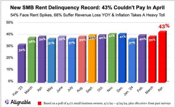 O magari potrebbe interrogarsi su questo: il 43% delle piccole e medie imprese Usa ad aprile non è riuscita a pagare l’affitto. E se il 54% ha certificato un aumento della pigione mensile come motivazione, frutto marcio di un mercato immobiliare finanziarizzato e di tassi che tengono lontani dall’acquisto, il 68% degli interpellati parla di inflazione e calo drastico delle entrate.